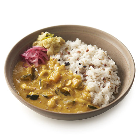 カシューナッツをたっぷりのココナッツミルクで煮込んだスリランカ風カレーです。かぼちゃの甘味とかつお節の風味がカシューナッツの旨味を引立てます。