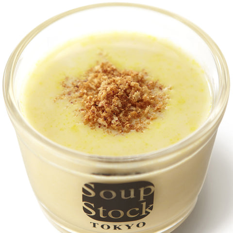 北海道産のスイートコーンと国産のさつま芋のおいしさを、十二分に発揮させました。素材独自の甘さが魅力の冷たいスープです。